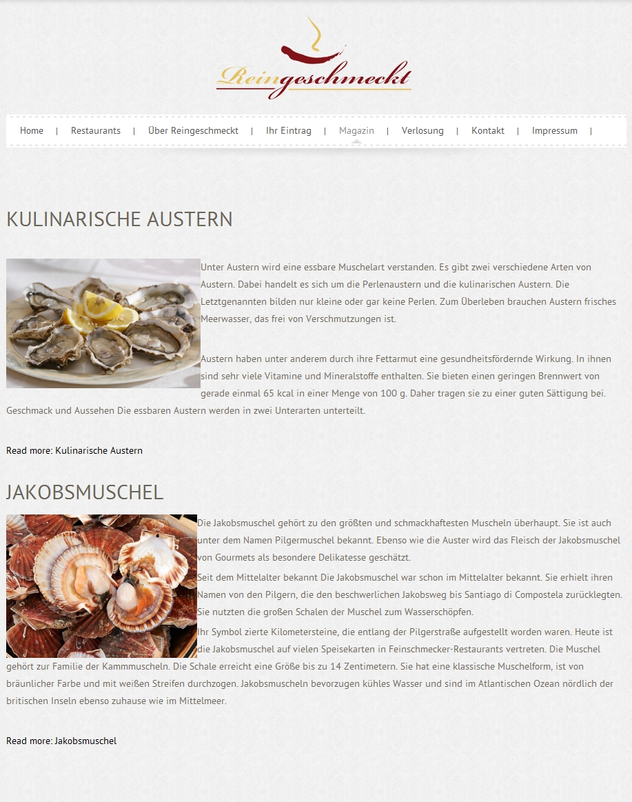Ein Gastronomieführer der besonderen Art. Viele Restaurantführer brüsten sich mit über 20.000 Einträgen, doch dahinter stecken meistens nur die Angaben der Anschrift. Hier finden Sie mehr Informationen über das Restaurant, mit Bildern und teilweise Speisekartenauszüge.